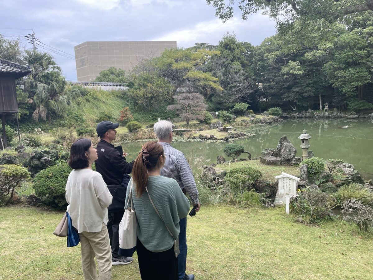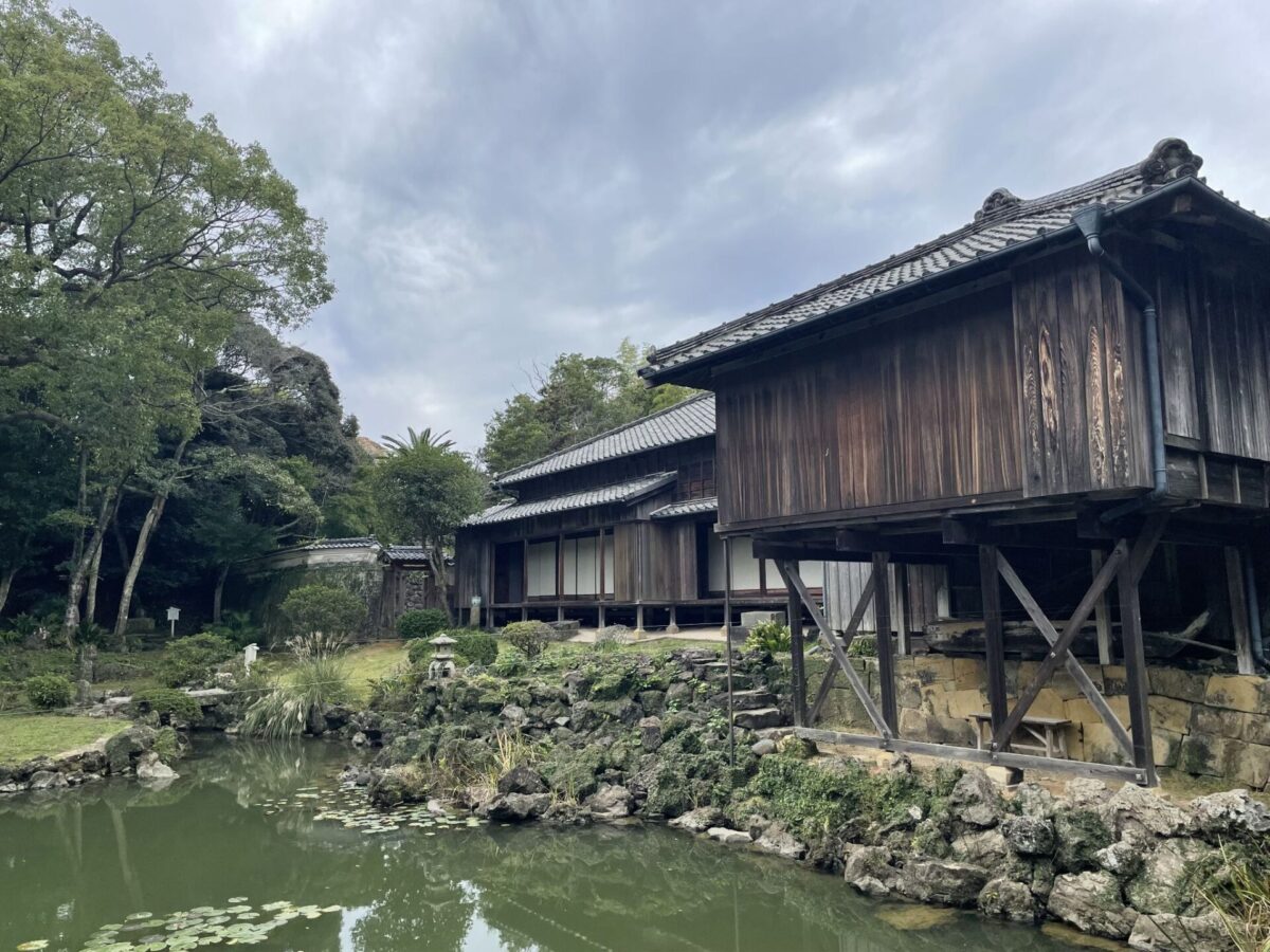 - The Garden’s Unique Fusion: The garden, created by a Buddhist priest from Kyoto, is modeled after the pond at Kyoto’s Kinkaku-ji Temple, giving it a refined elegance. However, its characteristics truly unique to Goto include the use of lava stone from Mount Onidake, Fukue’s symbolic volcano, for the garden rocks and artificial hills, and the planting of subtropical species like Areca palms and Sago cycads.